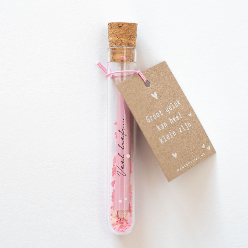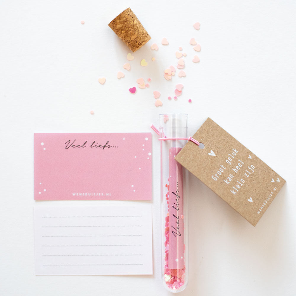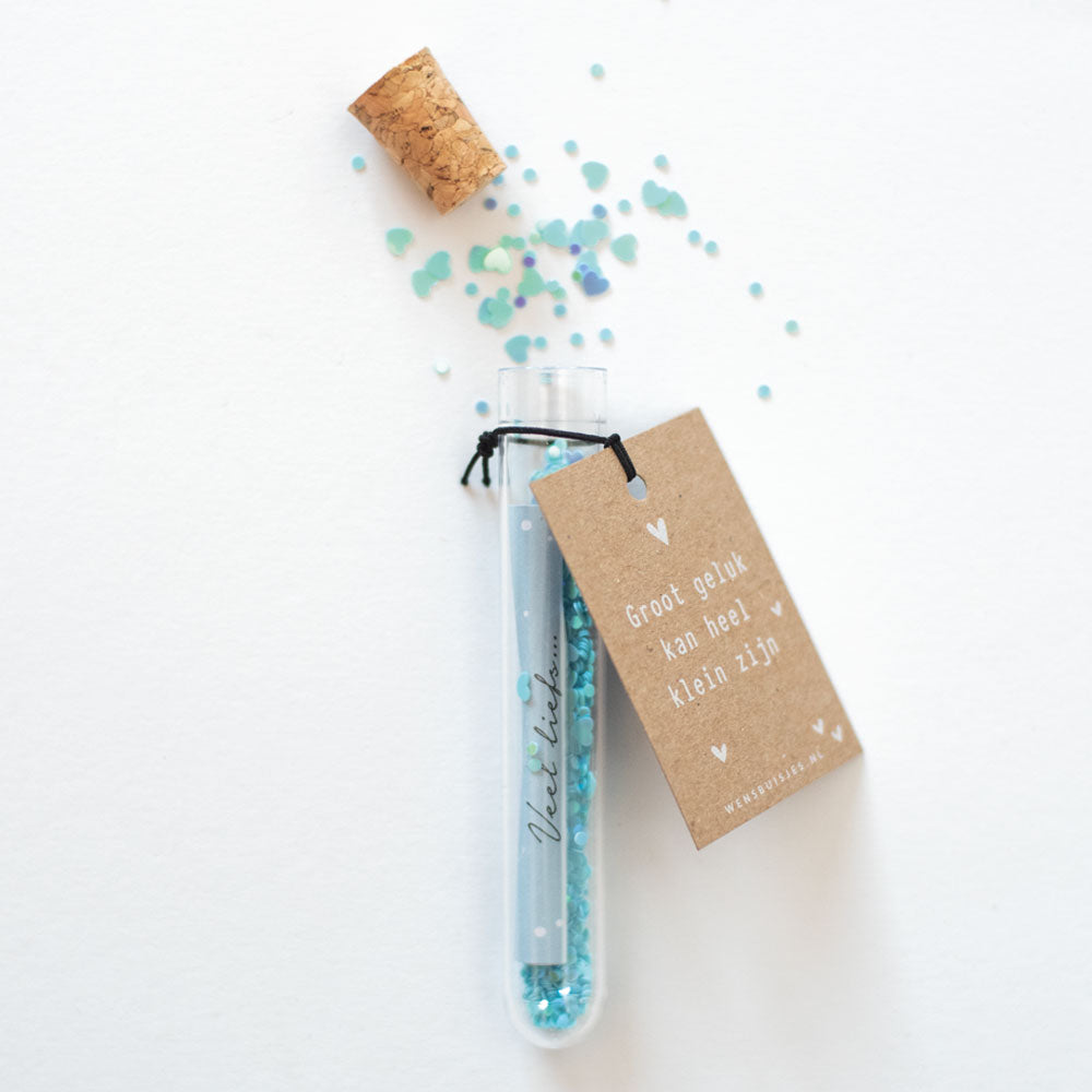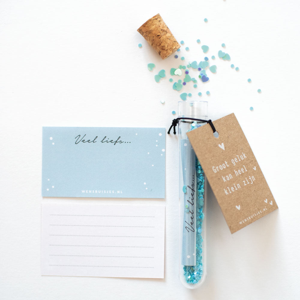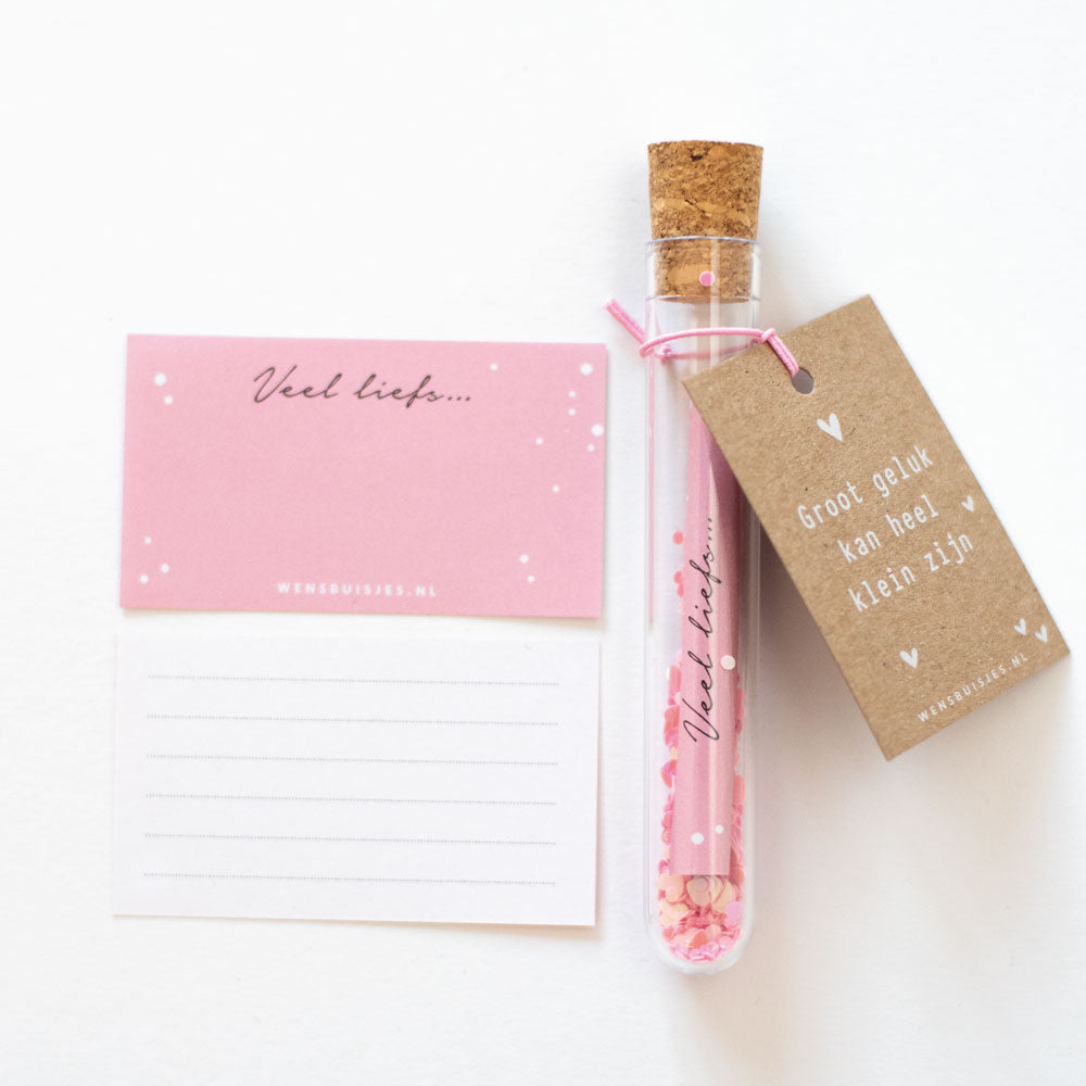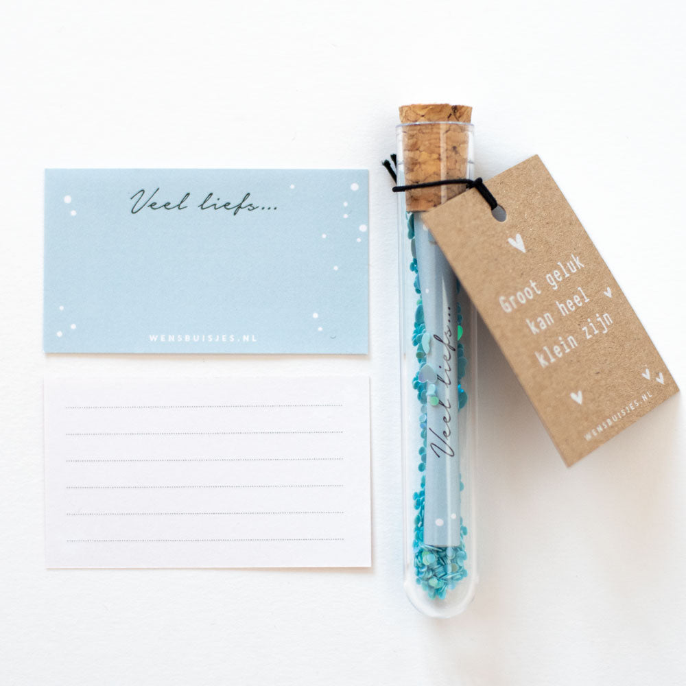 Baby geboren of een zwangerschap felicitatie? Met dit mooie wensbuisje stuur je een originele felicitatie op! Het buisje is verkrijgbaar in 3 kleuren; roze, blauw of een mix van beiden kleurtjes.