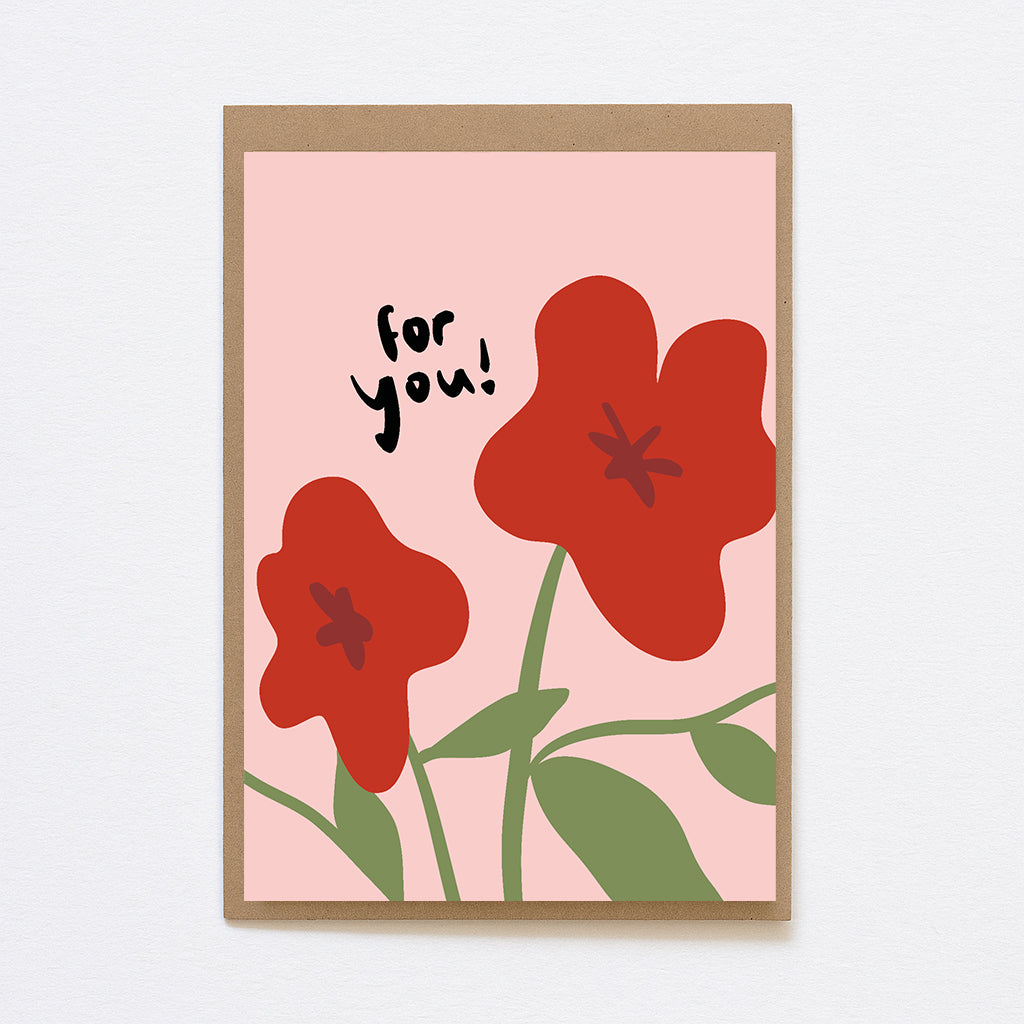 Soms is ‘ik denk aan je’ genoeg. Deze zachte kaart met bloem en de boodschap For You is perfect voor die kleine momenten van aandacht.