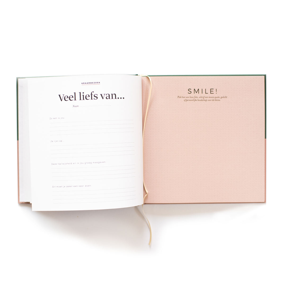 Door de diverse mogelijkheden in het kraambezoekboek kan er door het bezoek zelf gekozen worden, wat bij hen past. Zij kunnen kiezen uit; een mooie quote, een persoonlijke boodschap of een invulpagina in willen vullen.