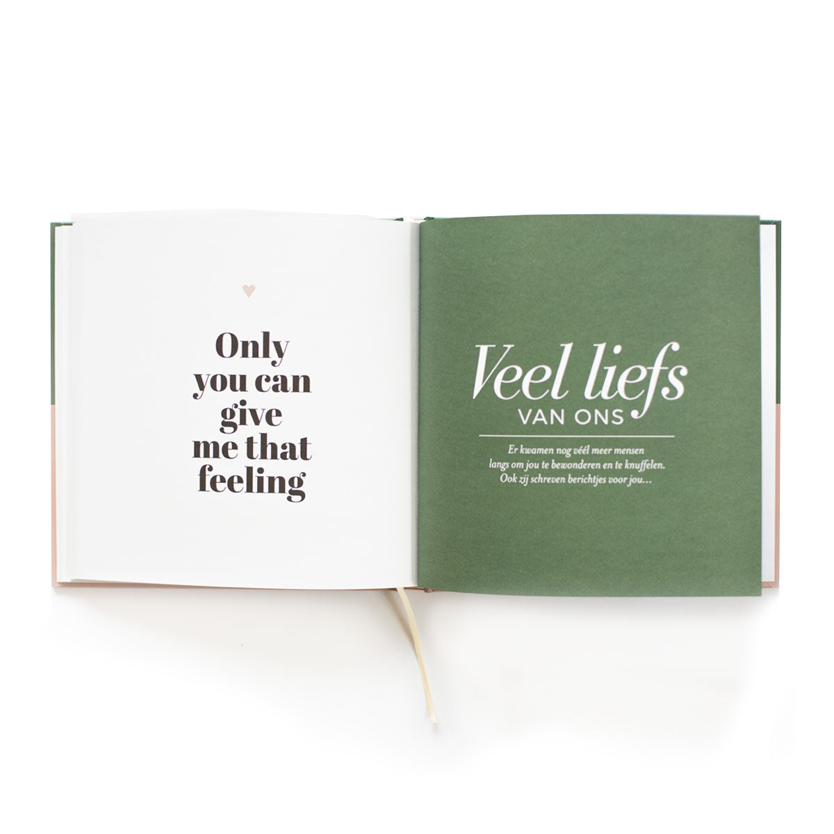 Het wordt een boek vol mooie herinneringen, gelukswensen en foto's van de eerste kennismaking.
