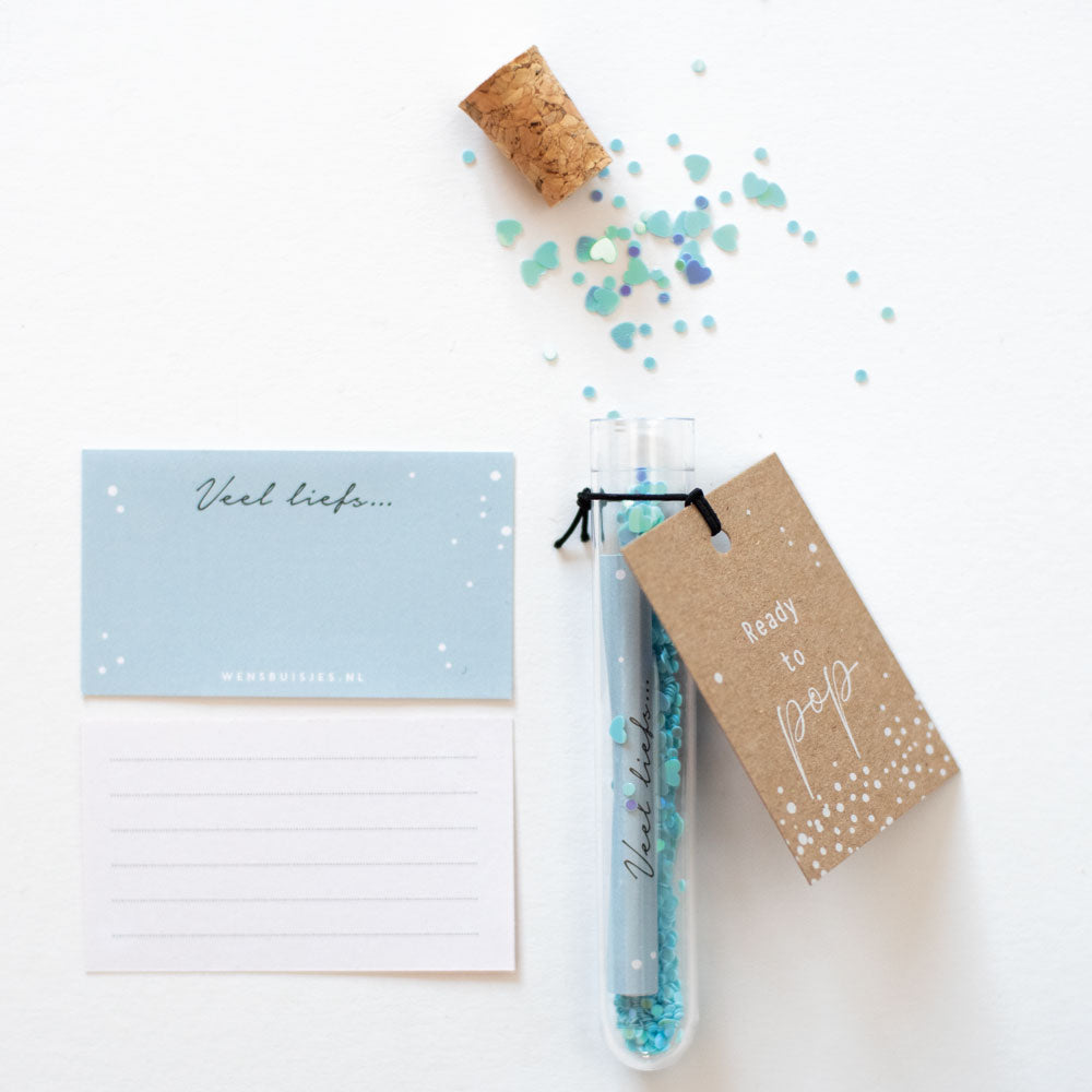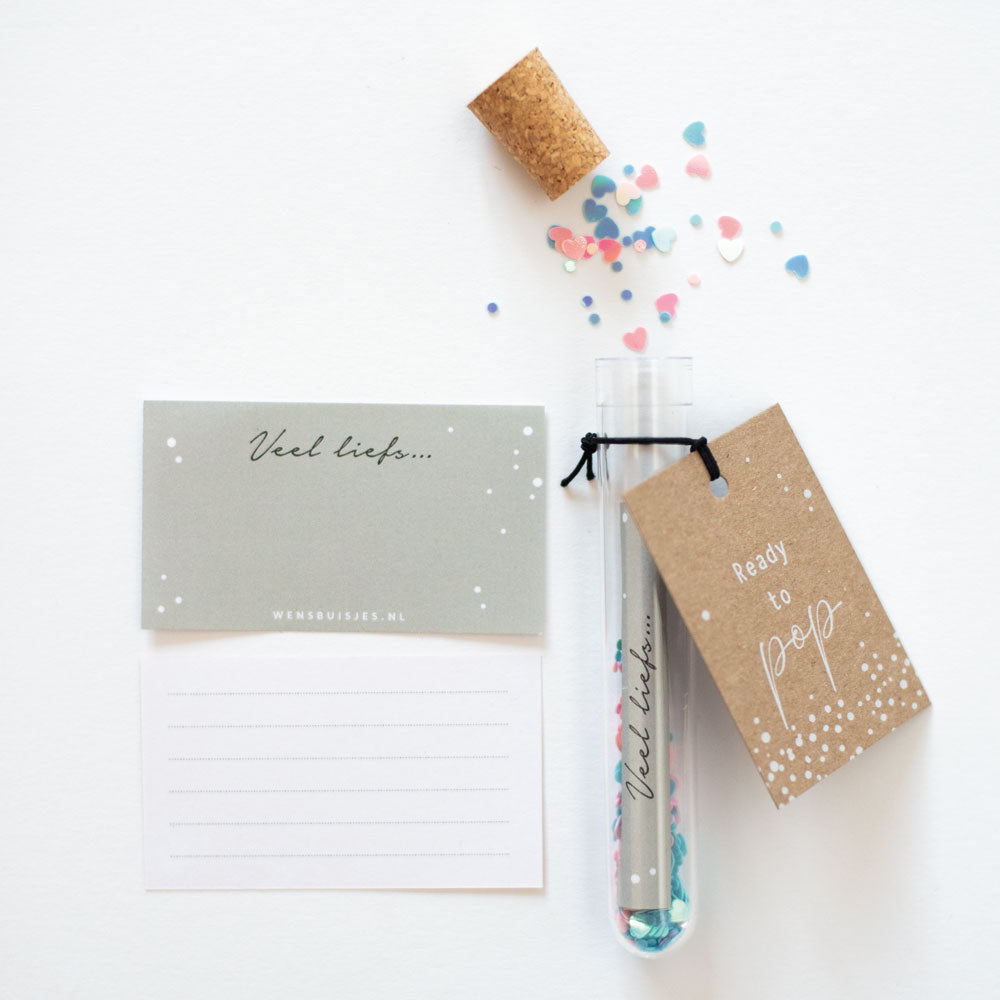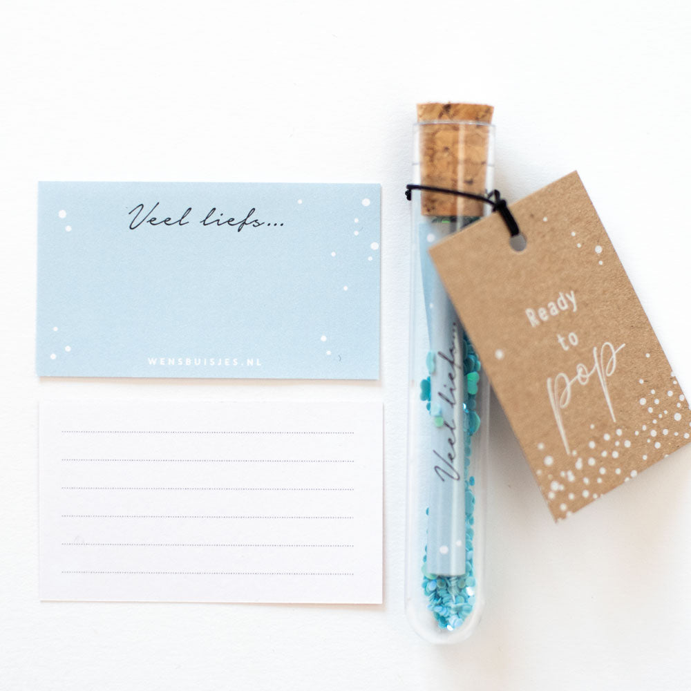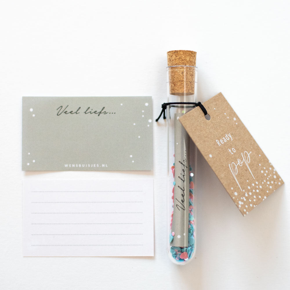 Ready to pop; Het originele wensbuisje om te versturen voor een zwangerschap, voor het naderende verlof of wat dacht je van tijdens een babyshower?