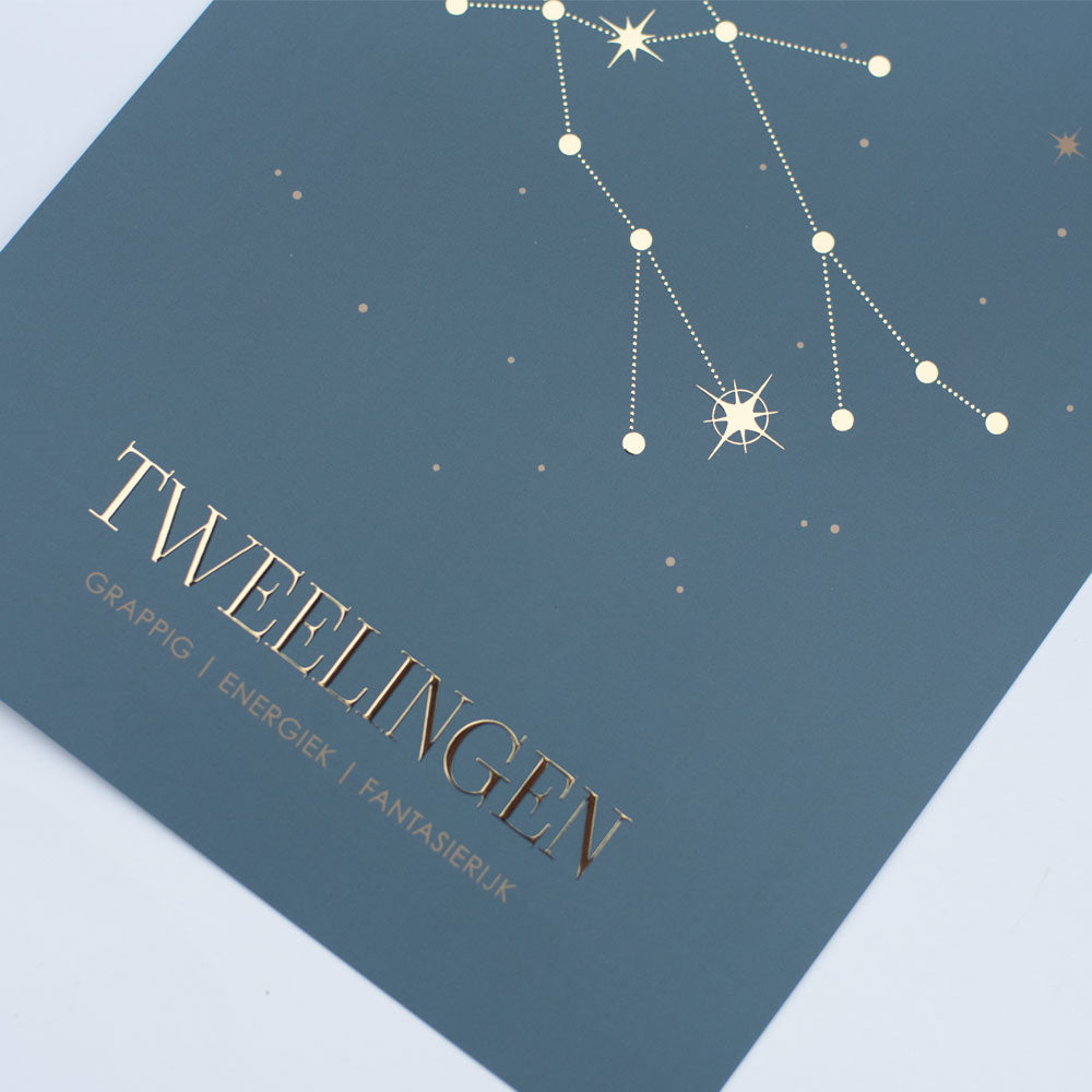 Sterrenbeeld poster - Tweelingen - Warm blauw