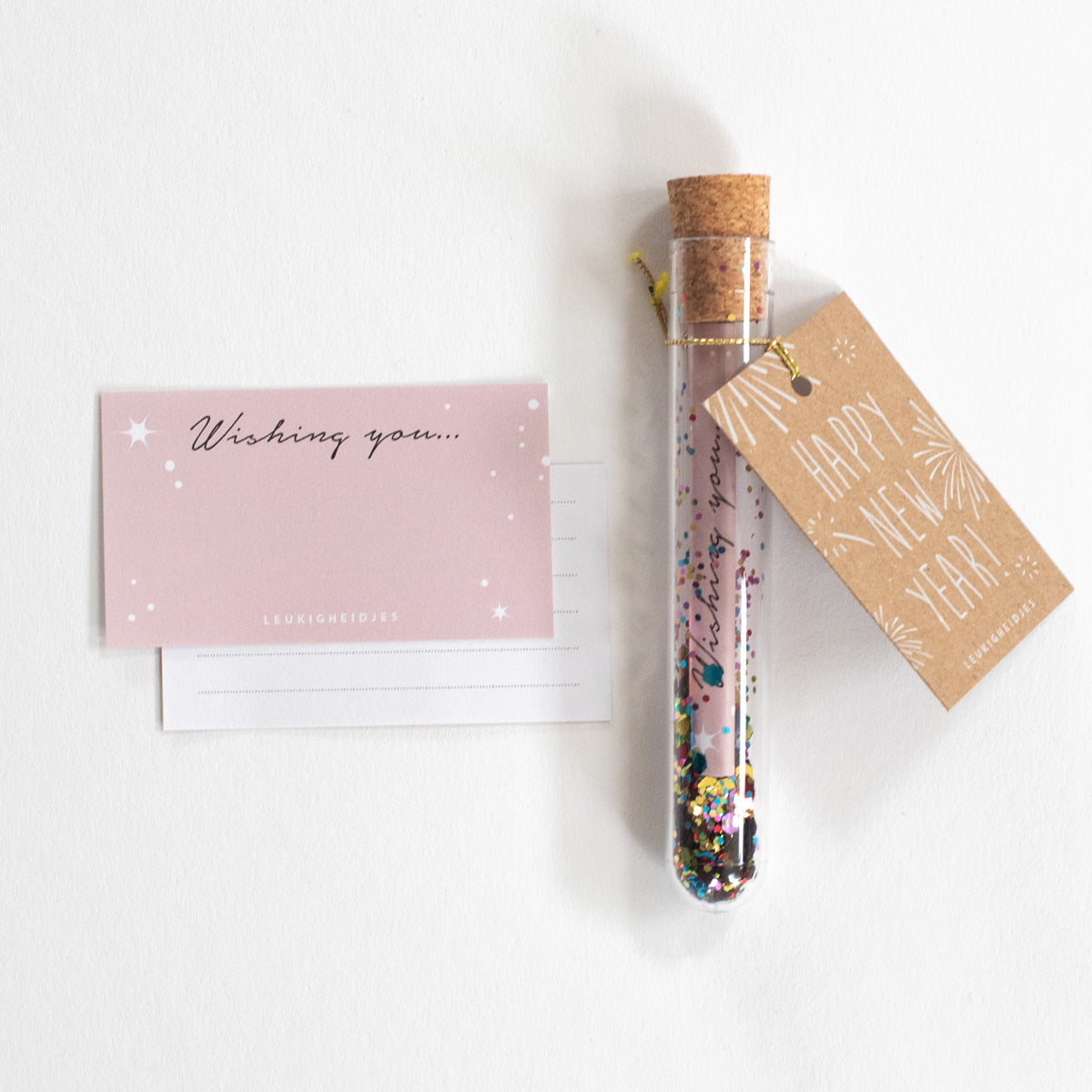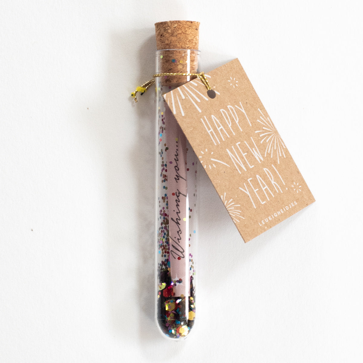 Happy new Year! Een mooi en magisch nieuw begin van het jaar! Wees origineel met onze Nieuw jaar wensbuisjes. Met de wensbuisjes wens je jouw dierbare en familie een goed nieuwjaar met een persoonlijke boodschap.